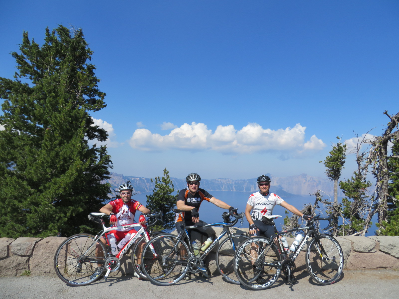 Wake up call was at 6 am, with our standard alarm from Hans, a shaking of your tent followed by “..are we here to ride or sleep?” We had apple pancakes for breakfast, tore down camp, and we were on the road by 8am. We started with a 7 mile climb to the Crater Lake Rim road, followed by 25 miles of undulating, scenic road around the crater.
