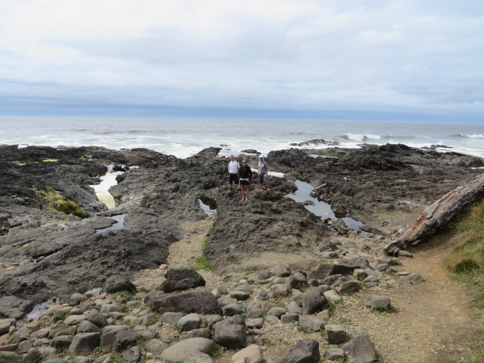 We woke up to light rain from the coast, but we didn’t have to tear down camp. This was our rest & hike day so we slept in until 7am. Breakfast was Oatmeal and fruit, and we headed up the coast for a short 42 mile ride. Natasha picked us up and we headed for our best lunch of the trip; fish tacos, clam chowder and shrimp, followed by Huckleberry ice cream. Huckleberry grows wild all over Oregon. We then drove to Cape Perpetua and hiked along the coastal trails, viewing lighthouses, sea rocks, and tidal pools. After a great day of sight seeing, we had Veggie Burgers and salad and discussed plans for future OTB 500’s.