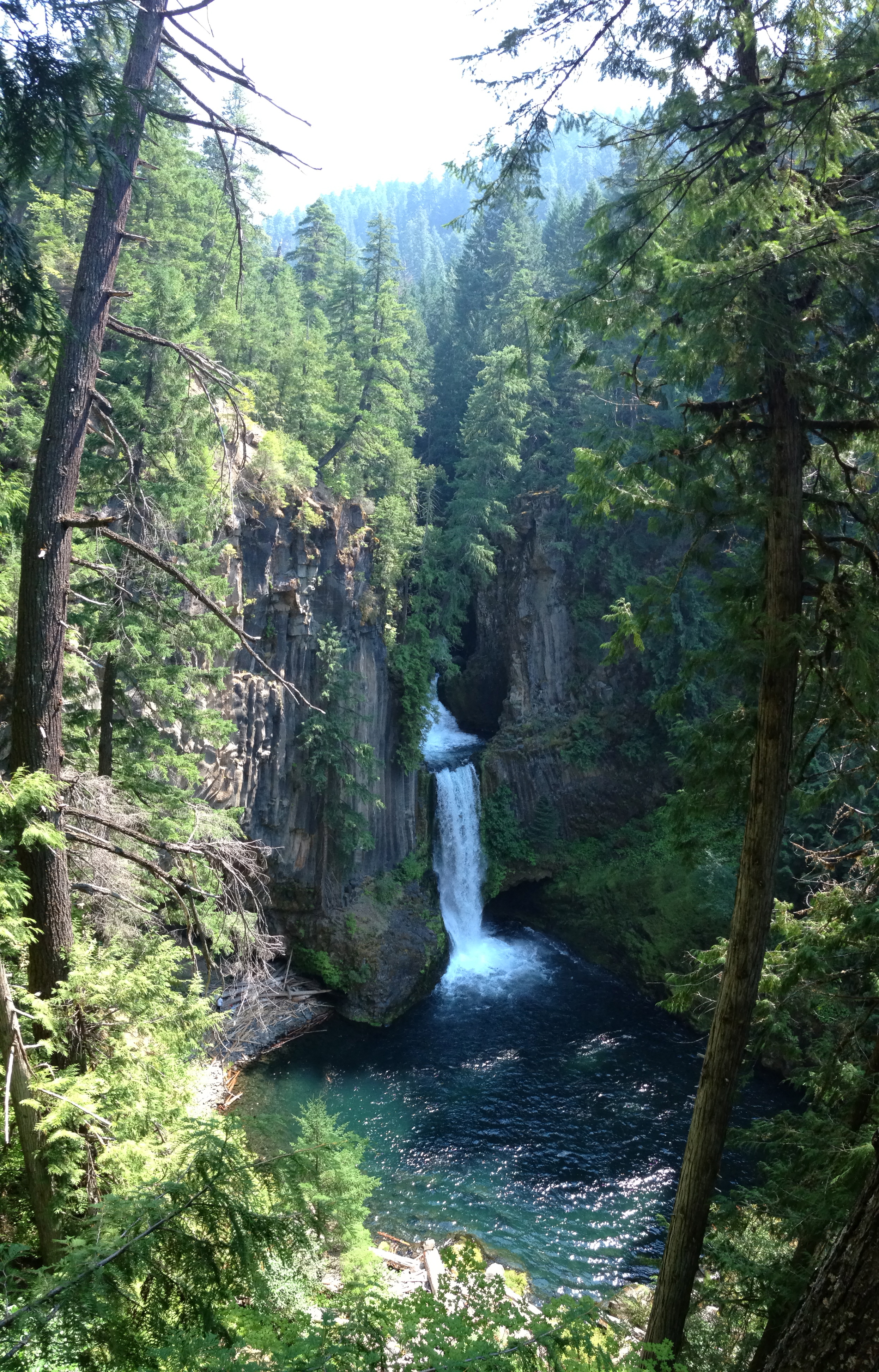 us, as it was one incredible lake and volcano after another. We rode by Diamond Lake and Mount Thielsen, and stopped for a hike to Tokatee Waterfall with Natasha. We later camped at Susan Creek State Park and enjoyed chicken, corn and salad for dinner. The weather was perfect again for what would be our most scenic stage of the trip.