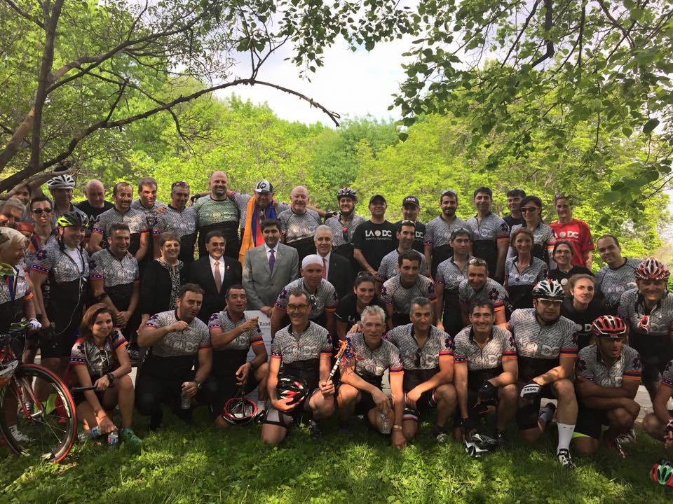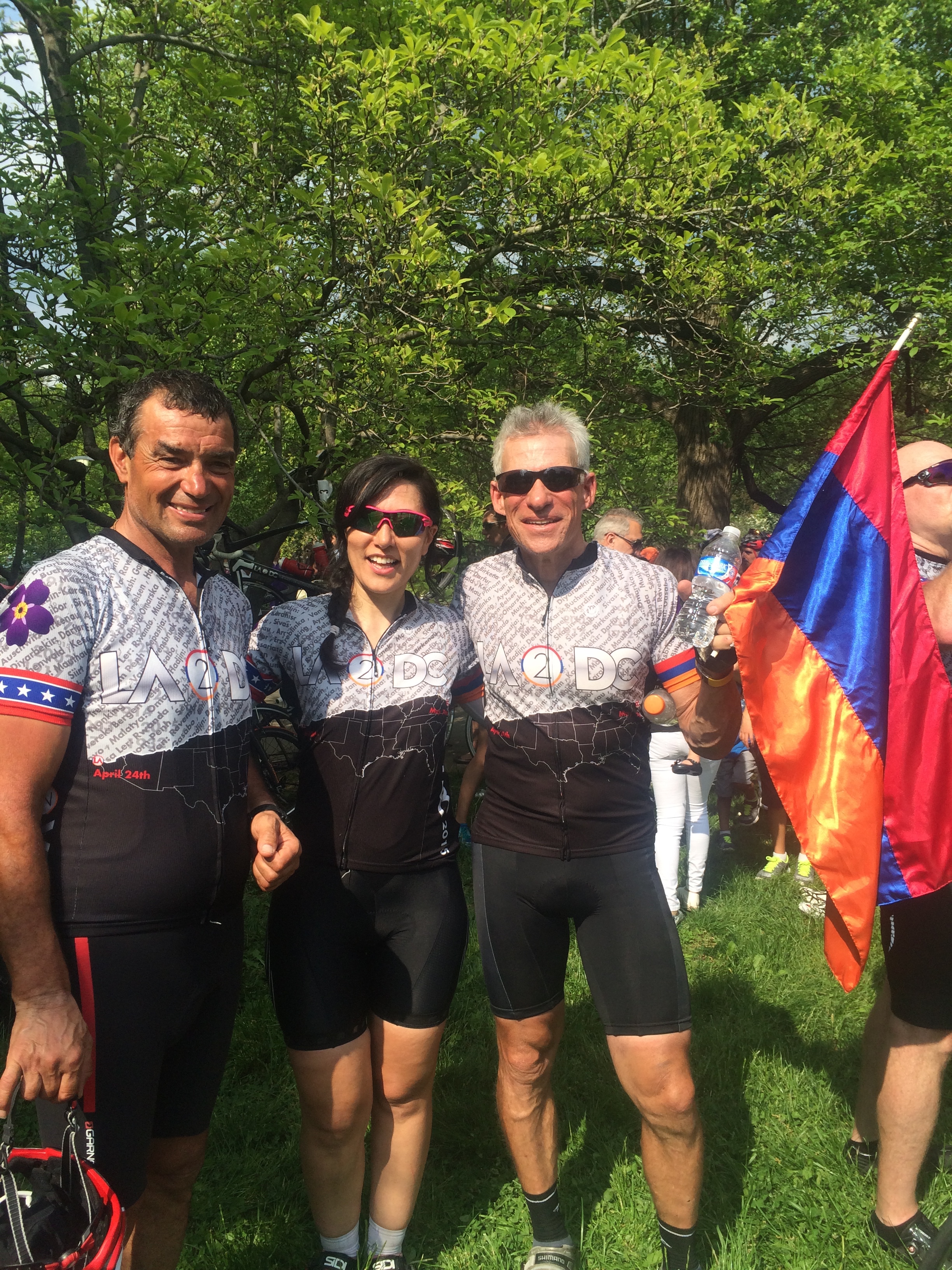As we got closer to the finish we could see the LA2DC runners on the other side of the street. It was a hot and humid day and I could see some of them were having a hard time with the heat but they carried on. As we approached the park there was a crowd to cheer us on. We made a parade lap around the park and then congratulated each other, posed for photos and sang Armenian patriotic songs and listened to Grigor recite a poem.